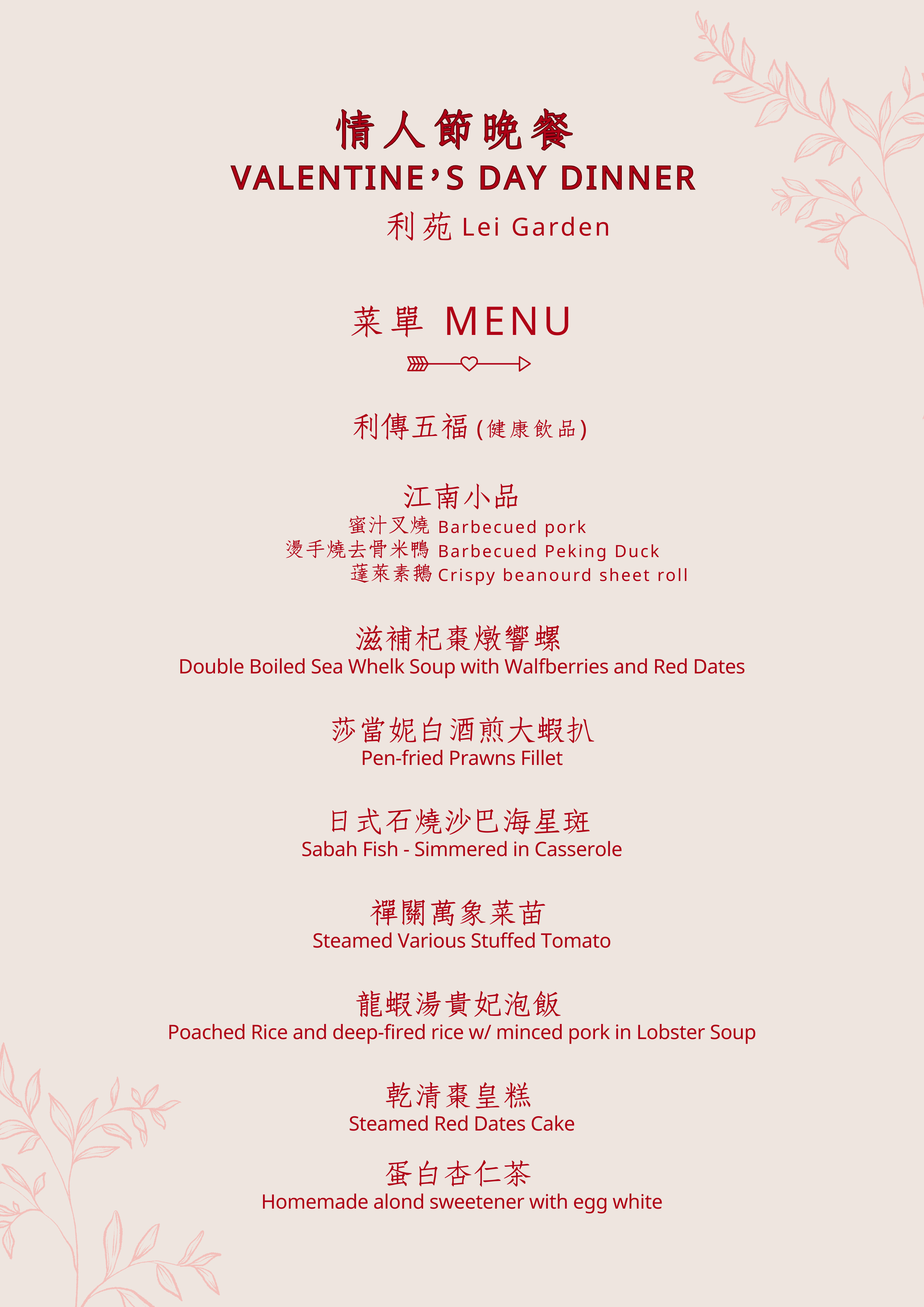 情人節音樂會及晚餐套票$1,500/位 (包括一張貴賓票門票)